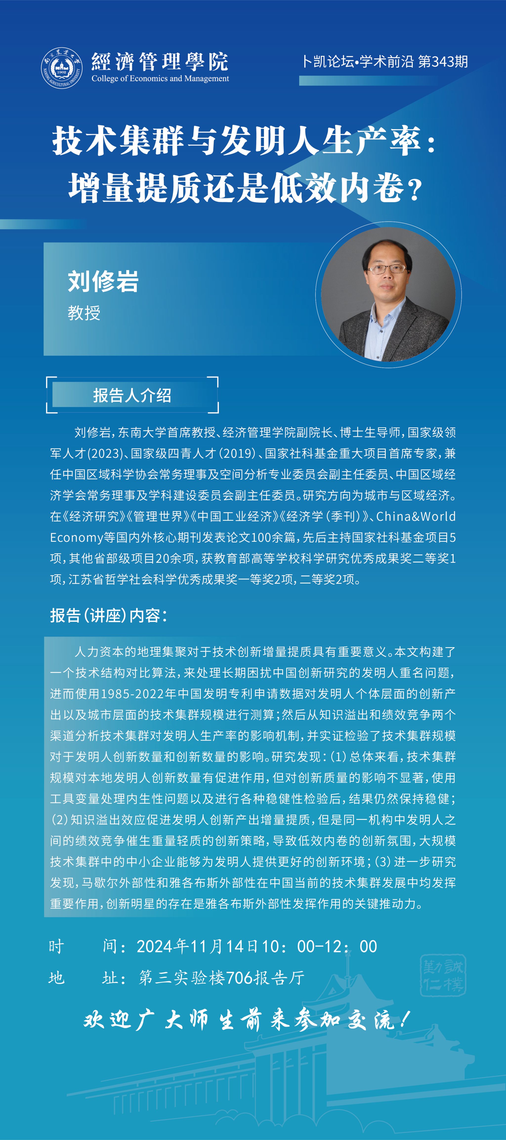 题 目:技术集群与发明人生产率:增量提质还是低效内卷?