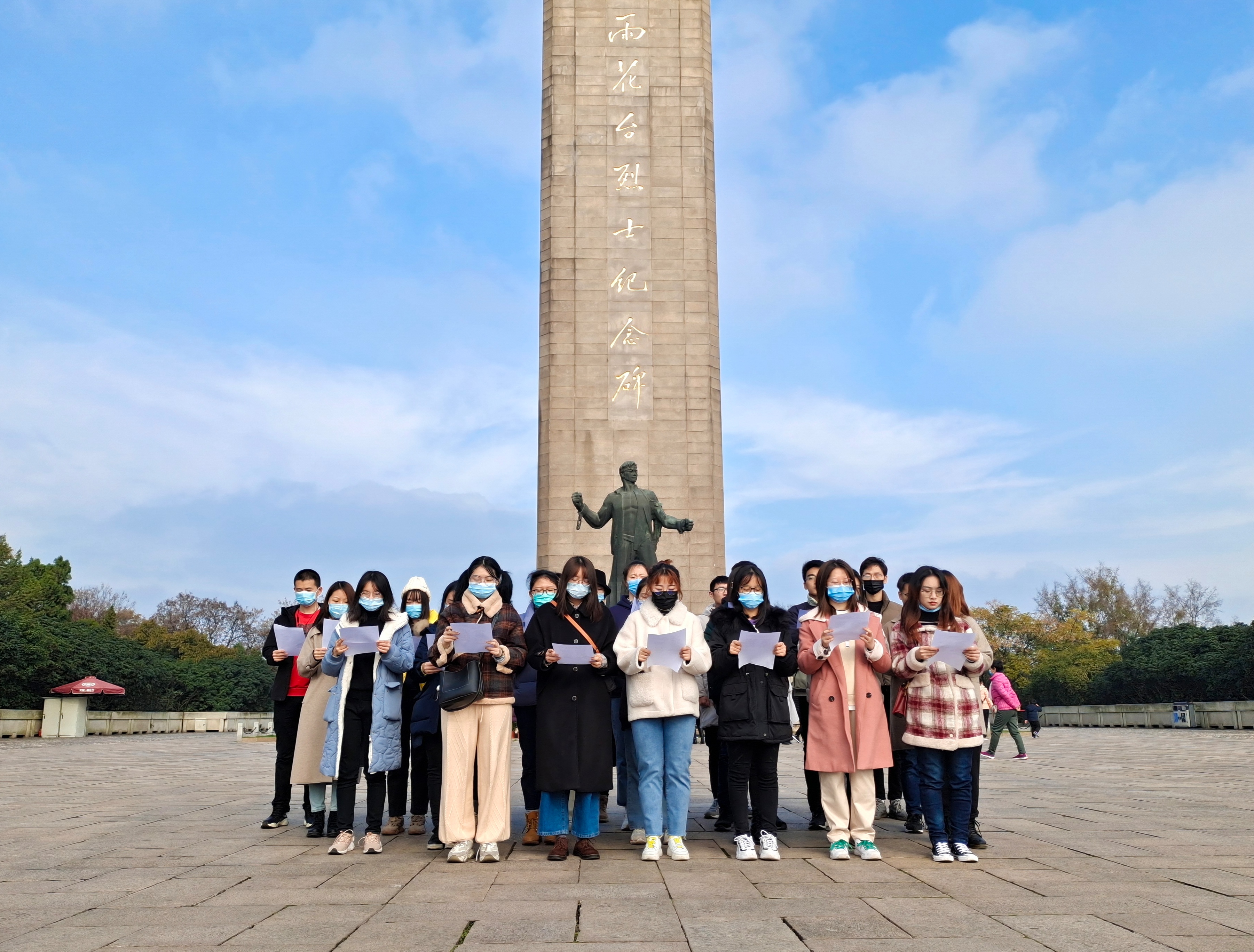 雨花台烈士陵园是新中国规模最大的纪念性陵园,全国爱国主义教育示范基地之一。党员同志们从北广场出发,依次至北殉难处烈士群雕、革命烈士纪念碑、纪念桥、纪念馆等处参观学习。